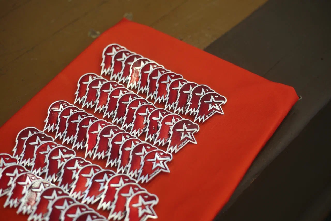 После торжественного принятия клятвы наши гости вручили ребятам значки юнармейцев.