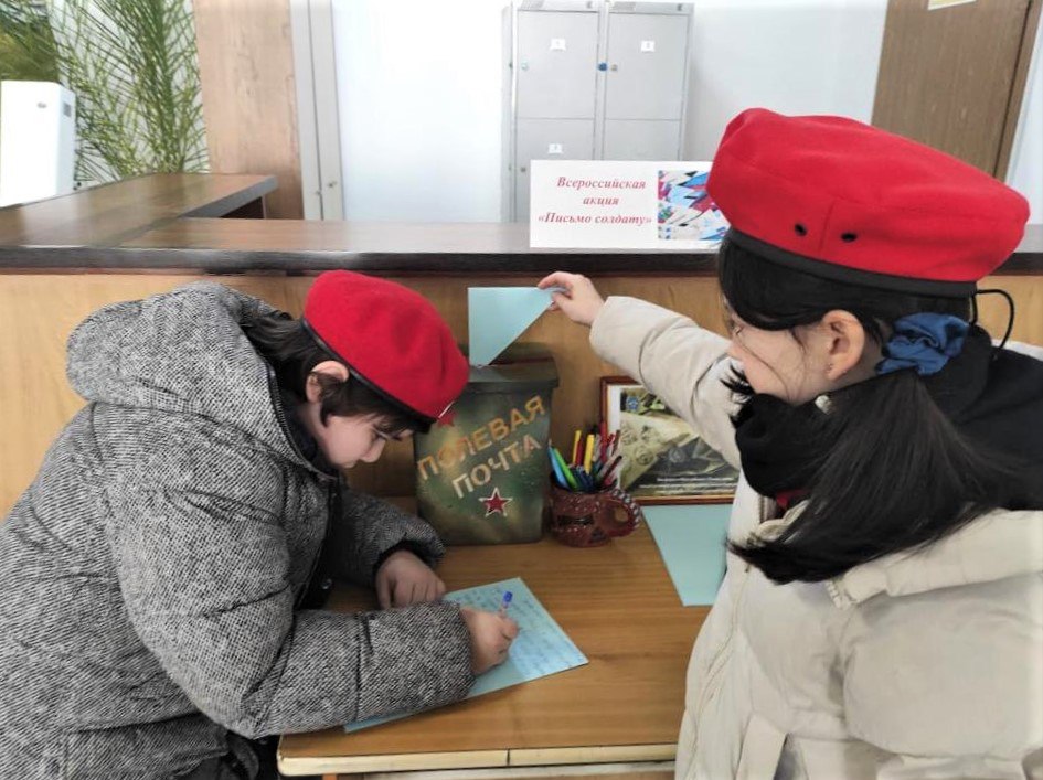 В завершении ребята приняли участие во Всероссийской акции «Письмо солдату», которая проводится Минобороной России совместно с Минпросвещения России. Школьники оставили свои пожелания военнослужащим.