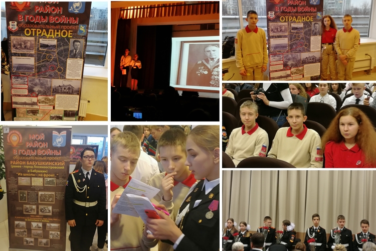 10 декабря юнармейцы 8В класса (классный руководитель – Прокудина О.А.) совместно с координатором юнармейского движения школы Гречишниковым О.И. приняли участие в окружной конференции «Мой район в годы войны». Организатором конференции, в рамках одноименного городского проекта, выступила школа «Глория». Большую помощь в проведении мероприятия оказали кадеты-юнармейцы 8К класса под руководством воспитателя-офицера Инкина А.А.