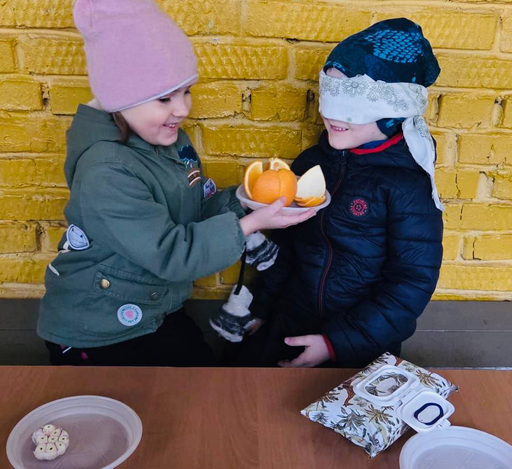 Как это было: дети, закрыв глаза, пытались последовательно уловить запахи вокруг. Сначала запаха не было. Но как только к маленьким носикам приближалась тарелка, например, с кожурой апельсина, сразу чувствовался апельсиновый аромат.
