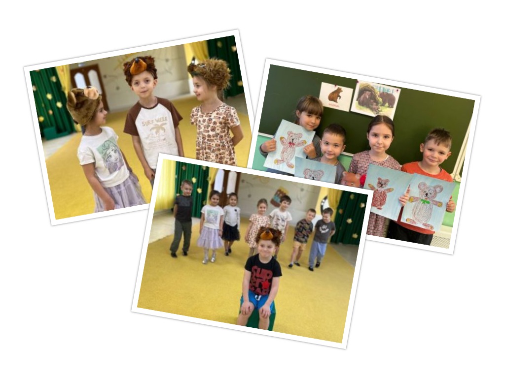 После чтения энергия била ключом — мы весело играли в «У медведя во бору» и перенесли свои впечатления на бумагу, нарисовав забавных и грозных мишек.