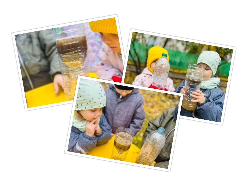 В воду во второй бутылке добавили землю.