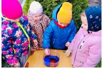 На образовательной прогулке ребята очень любят проводить эксперименты. В этот раз мы … необычным образом создавали новый цвет!