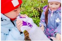 Сегодня на образовательной прогулке ребята проводили интересный опыт с мыльным раствором: оказалось, что с помощью мыла, полотенца и воздуха можно создать самый настоящий пенный столб, замок, трубу или даже змею!