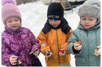 На образовательной прогулке дошкольники поучаствовали в весёлом и познавательном опыте с предметами из «Чудесного мешочка». Дети узнали, почему одни вещи на ощупь кажутся теплее других!
